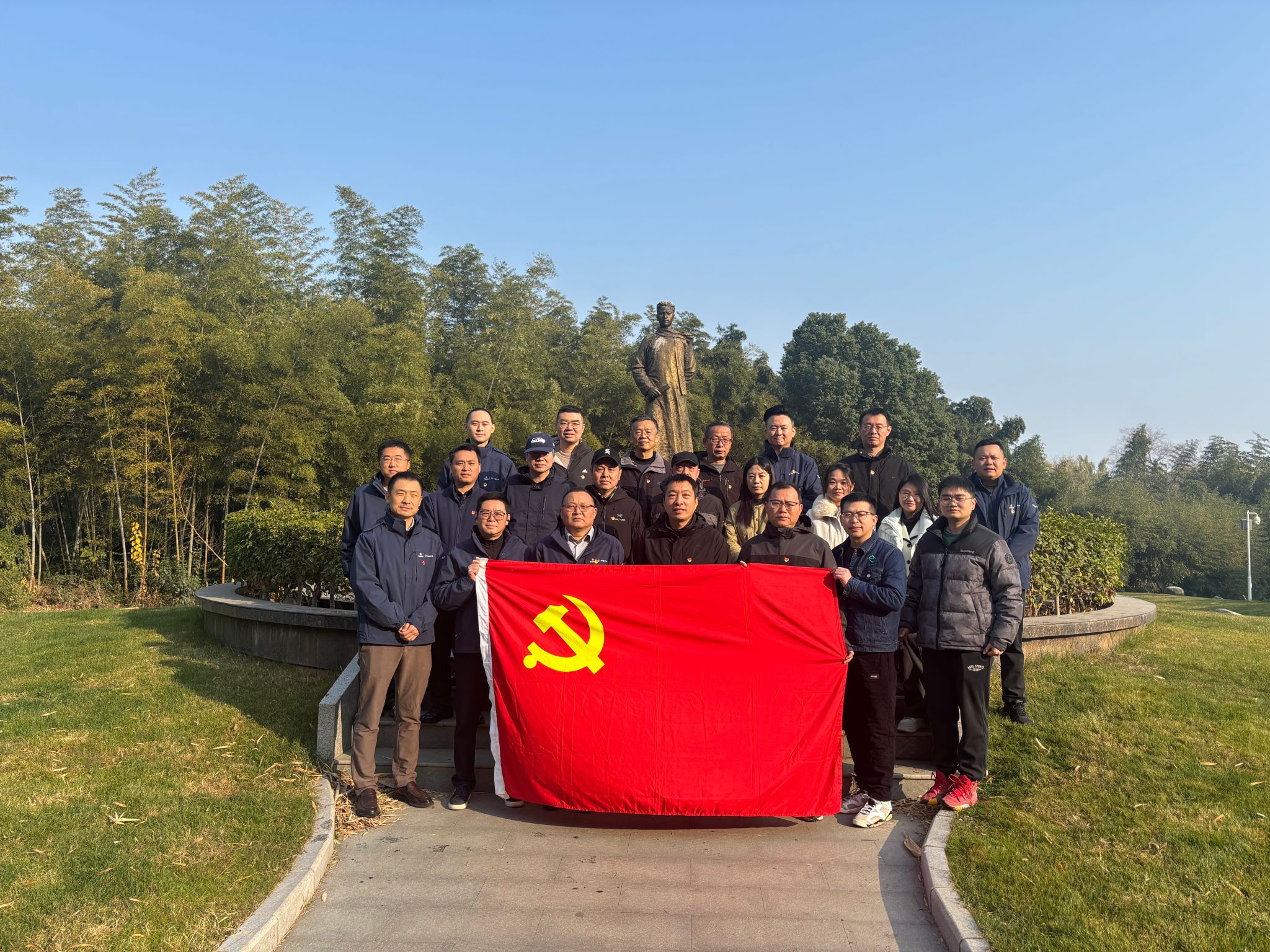 在廉园红色教育环节,全体党员在校园建设处处长、党支部书记王军的引导下参观廉园,并在我党早期著名工人运动领袖许白昊塑像前庄重重温入党誓词。党员们深切缅怀革命先辈 “清廉忠贞践初心” 精神,强化了新时代党员传承红色基因,为后续理论学习奠定了坚实的思想基础。
