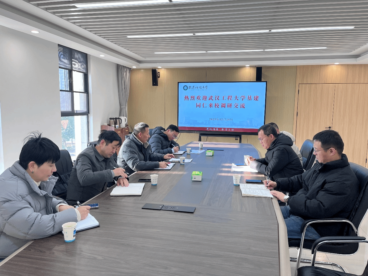 2025年12月25日上午,武汉工程大学基建与维修处副处长黎旭兵一行4人到我校黄家湖校区开展专题调研工作,双方在黄家湖校区师生服务中心会议室开展交流。会议由校园建设处副处长林森主持。